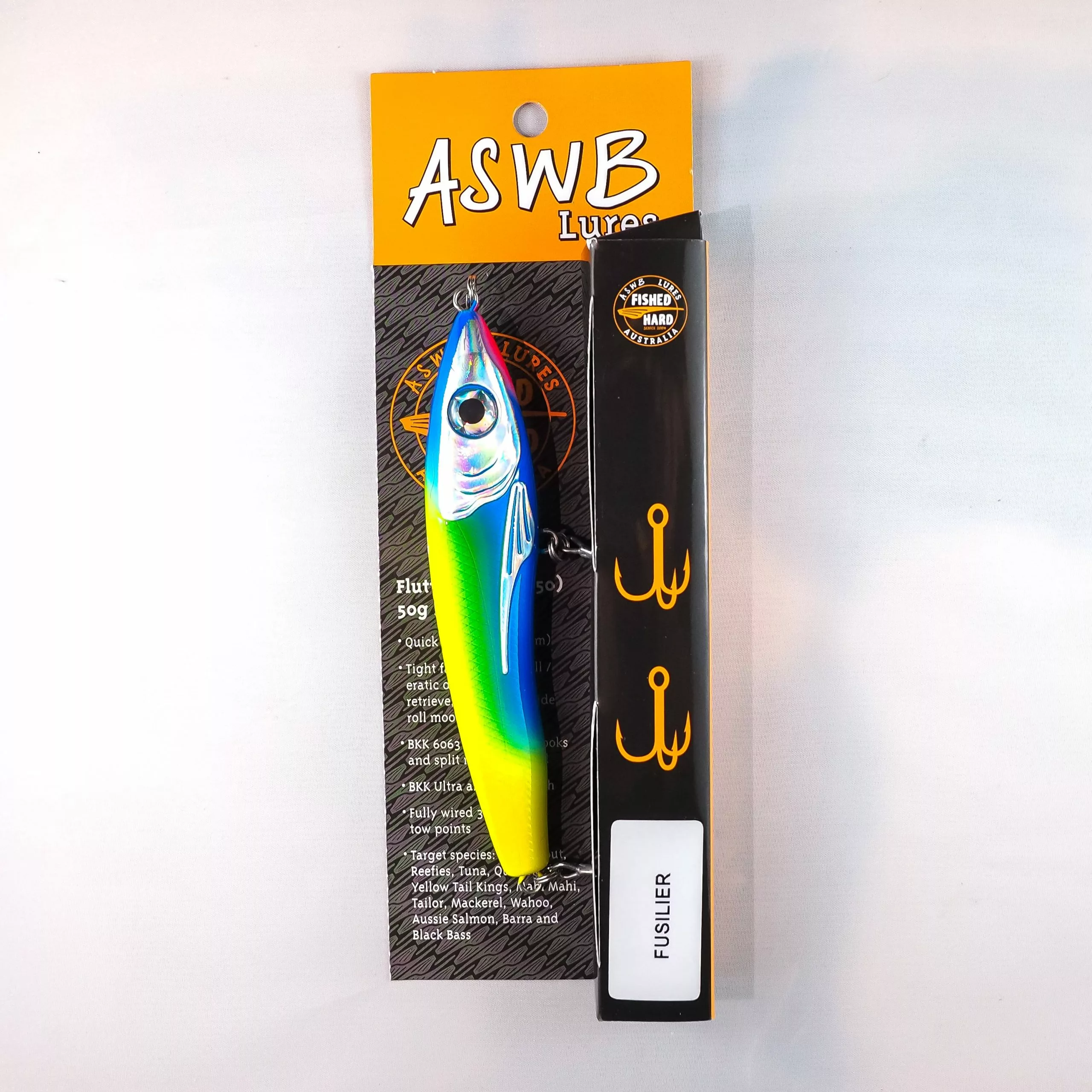 The new ASWB Flutter Drop 50 has just hit the market and is set to be a hit amongst lure fishing anglers. This moulded plastic lure is a first for the company which typically produces wooden lures. The ASWB Flutter Drop has a tight, fast flutter on the fall and an erratic dart on the jerk retrieve. At 130mm long and a choice of two weight options (40g & 50g) this series of lures is great for a range of saltwater species like tuna, Mahi Mahi, mackerel, YTK, Salmon etc