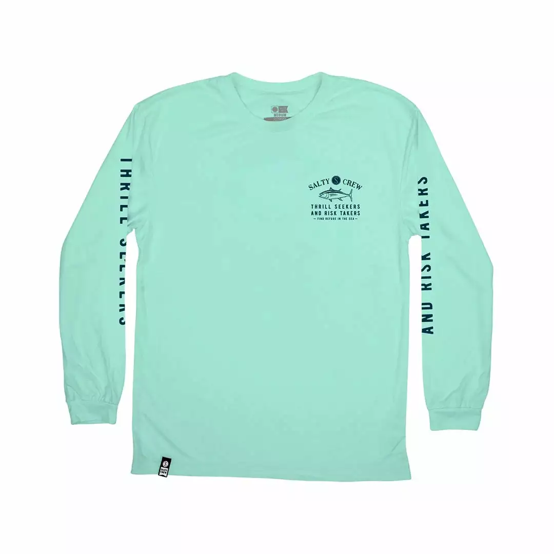 The Fishmonger L/S Rash Guard in Seafoam is a men’s technical rash guard with UPF 40+ Sun Protection. Featuring moisture wicking fabrication and screen printed front, back and sleeves. Made from 100% polyester.
