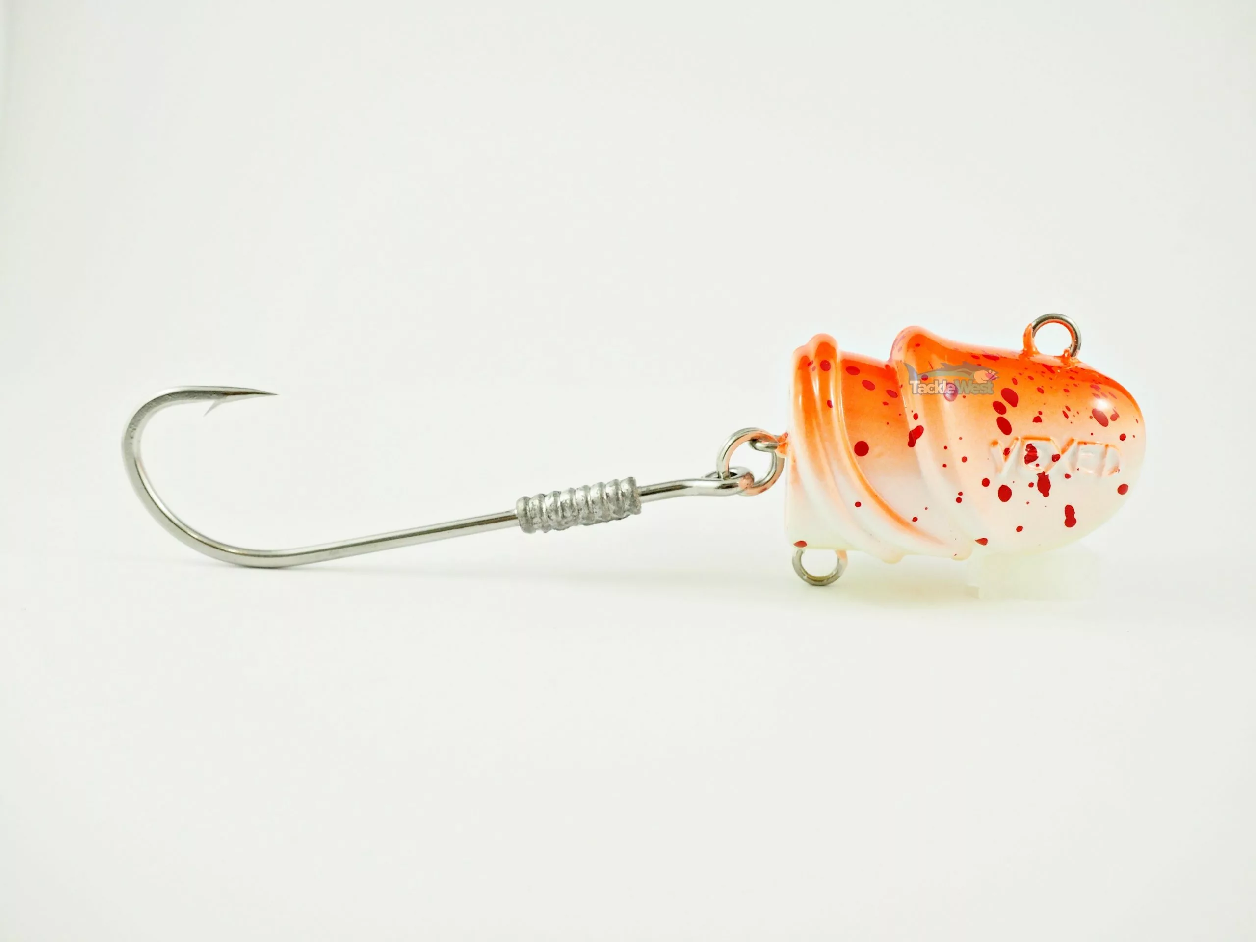 The iDict Head is designed specifically to be used with an iDict soft plastic paddle tail, the head has an under chin attachment ring for a Vexed Squid Dinger Flashy Assist Hook. Attaching the assist hook will increase hookup rate.